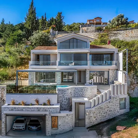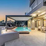 Isle Of View Villa Apolpaina dysponuje tarasem z widokiem na ogród oraz basenem.